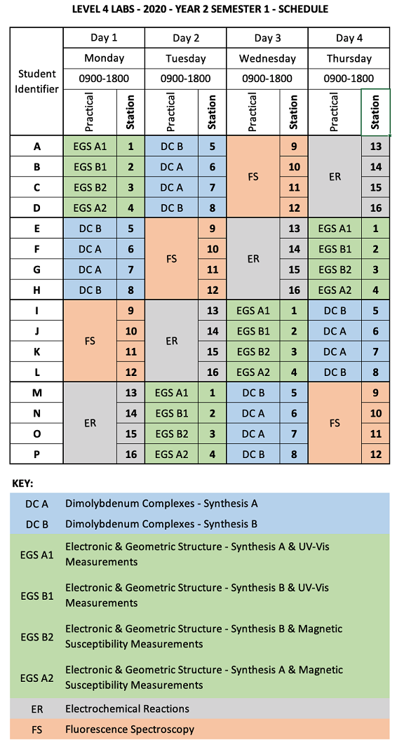 LEVEL 4 LAB - YEAR 2 SEMESTER 1 - 2020 - SCHEDULE