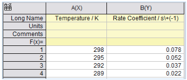 | 1. | Enter the data above into Origin (as columns and not rows) | ![]() |